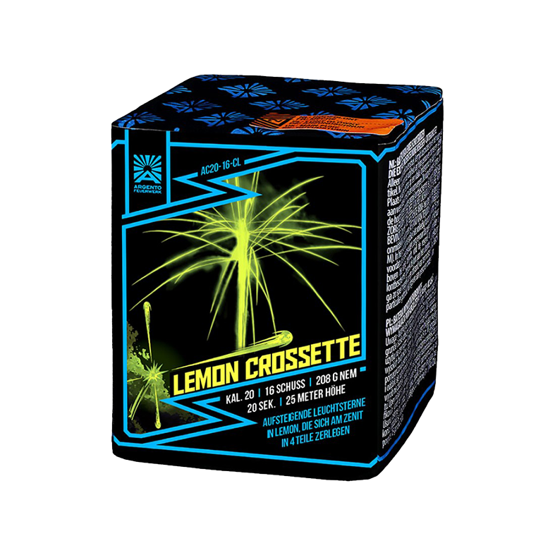 Aufsteigende Leuchtsterne in Lemon, die sich am Zenit in 4 Teile zerlegen.