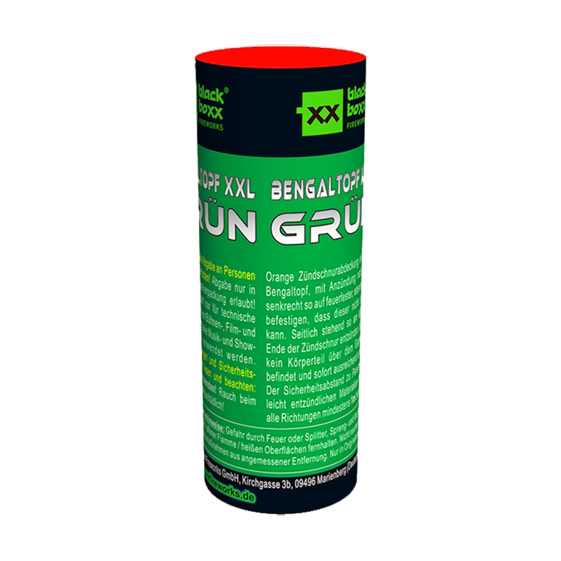 Grüner Bengaltopf mit intensiv leuchtender Farbe und minimaler Rauchentwicklung.